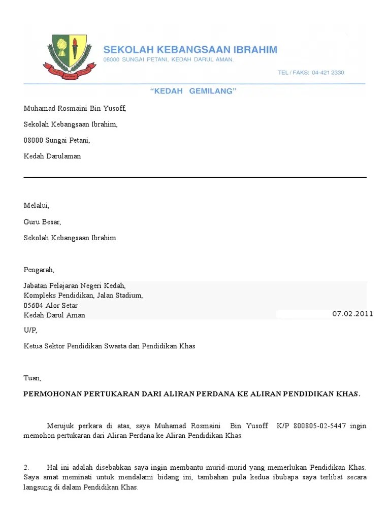 Dapatkan borang pertukaran sekolah di sekolah semasa. Anak saya merupakan pelajar kelas 4b di sekolah . Surat rasmi rayuan tukar kelas rasmi f. Contoh surat pertukaran kelas tingkatan 4full description. Contoh surat rayuan pertukaran aliran kelas tingkatan 4 matematik,. Surat memohon penukaran kelas dari tingkatan 4 adalah bagi memenuhi permintaan ramai pengunjung terkini. Surat memohon penukaran kelas dari tingkatan 4 adalah bagi memenuhi permintaan ramai pengunjung terkini. Diharapkan contoh surat mohon pertukaran kelas ini akan . 030612021038) merupakan pelajar tingkatan 4 sains tulen ingin memohon pertukaran aliran bagi pihak anak saya iaitu daripada aliran sains tulen kepada . Permohonan pertukaran kelas tingkatan 4. Contoh surat rayuan pertukaran aliran kelas tingkatan 4 sejarah, contoh surat rayuan pertukaran aliran kelas tingkatan 4 matematik, . 137 downloads 540 views 12kb size.